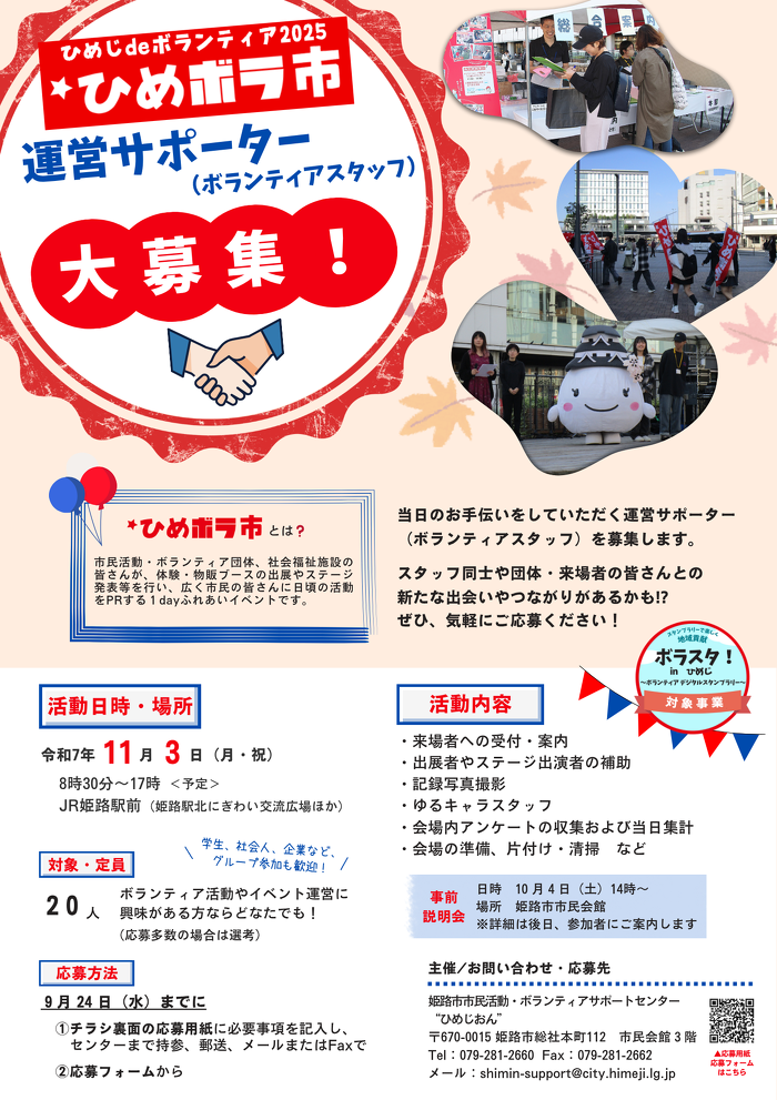 ▶応募方法等の詳細は、「市民活動ネットひめじ(ホームページ)」をご覧ください。