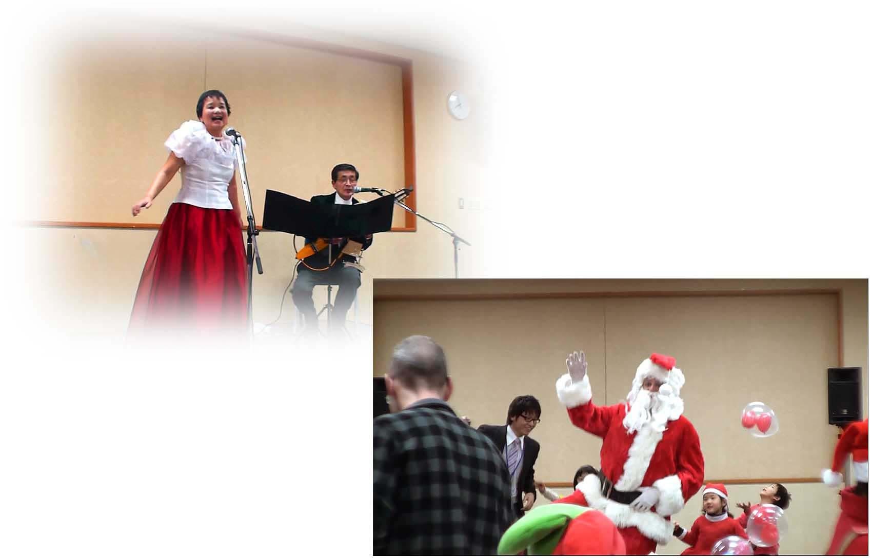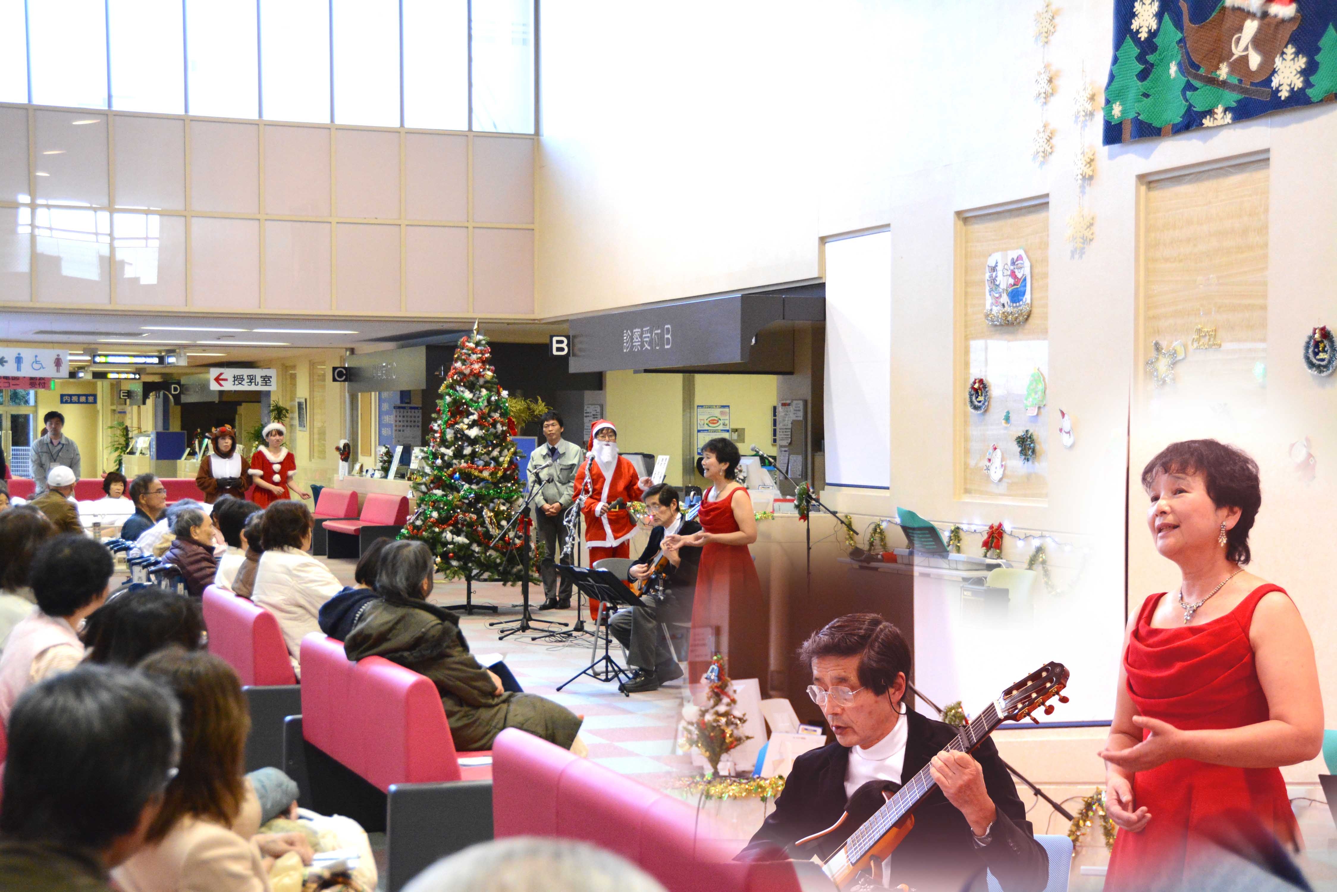 妻恵美子は、イタリア留学等で声楽(ソプラノ)を学びながら30年間大好きな歌を歌い続けています。その夫正幸(私本人)は高校で合唱、大学時代はホークソング同好会で歌とギターを始め、現在まで40年演奏しています。NHKトーアロード市民コンサート・元町ミュージックウイーク・神戸祭り・あかしふれあいコンサート・老人ホーム・障害者施設等で演奏してきました。最近は写真のように病院院内コンサートや地域の集会所やクリスマス会で演奏しました。優しいギター伴奏で心を癒す歌を聴いていただきたいと思っています。私たち自身、音楽のおかげで心豊かに過ごしています。私達の音楽で、心を開かれ涙ぐまれる人や、感動して一緒に口ずさまれる人を見るのが、最大の喜びです。