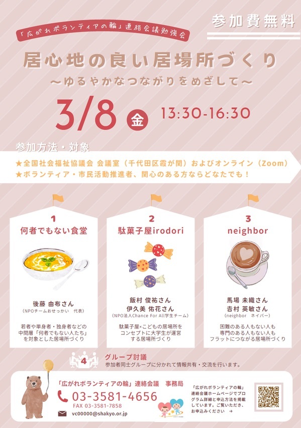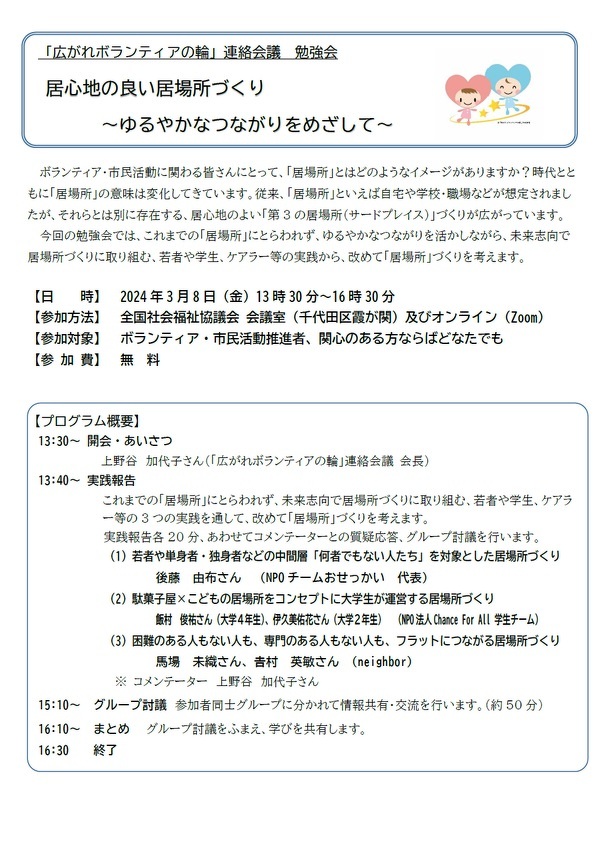 ▶詳細は、「広がれボランティアの輪」連絡会議HP「勉強会」をご覧ください。