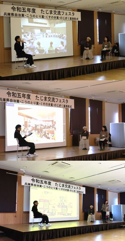 今年度は、但馬県民局主催の「たじま交流フェスタ」において行政と地域づくり活動団体をつなげ、但馬における主体的な地域づくり活動をさらに発展させるため、地域特性を活かした活動をされている方々による事例発表等を通して、団体相互の連携やノウハウの共有を図る地域連携強化事業を開催しました。